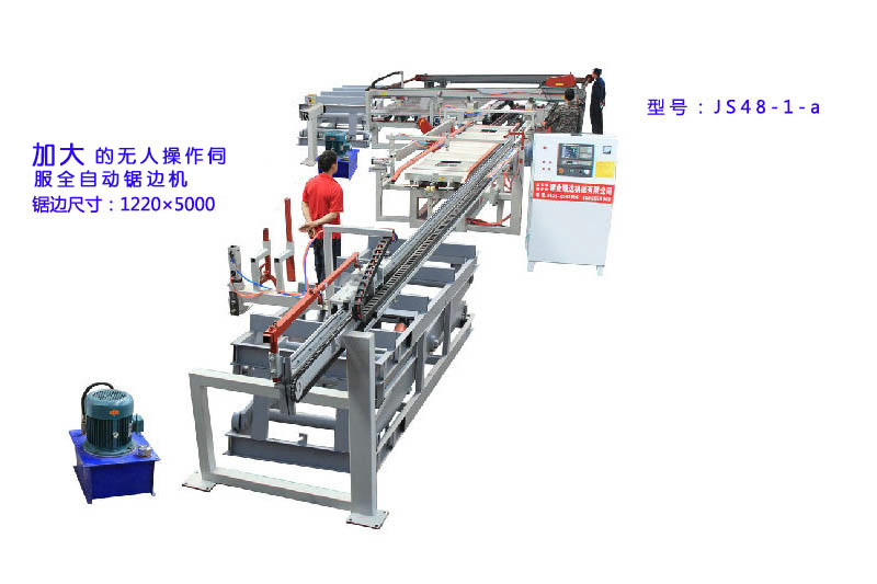 5、紅外線定位,自動排板,負荷式軌道鋸邊,四氣缸定位,板邊直線度高,無調角現象。