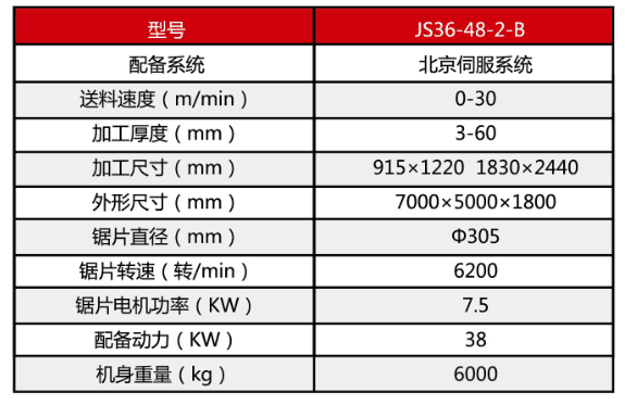 2、鋸邊尺寸36-48尺寸任意可調,一機解決不同尺寸板材鋸邊問題。